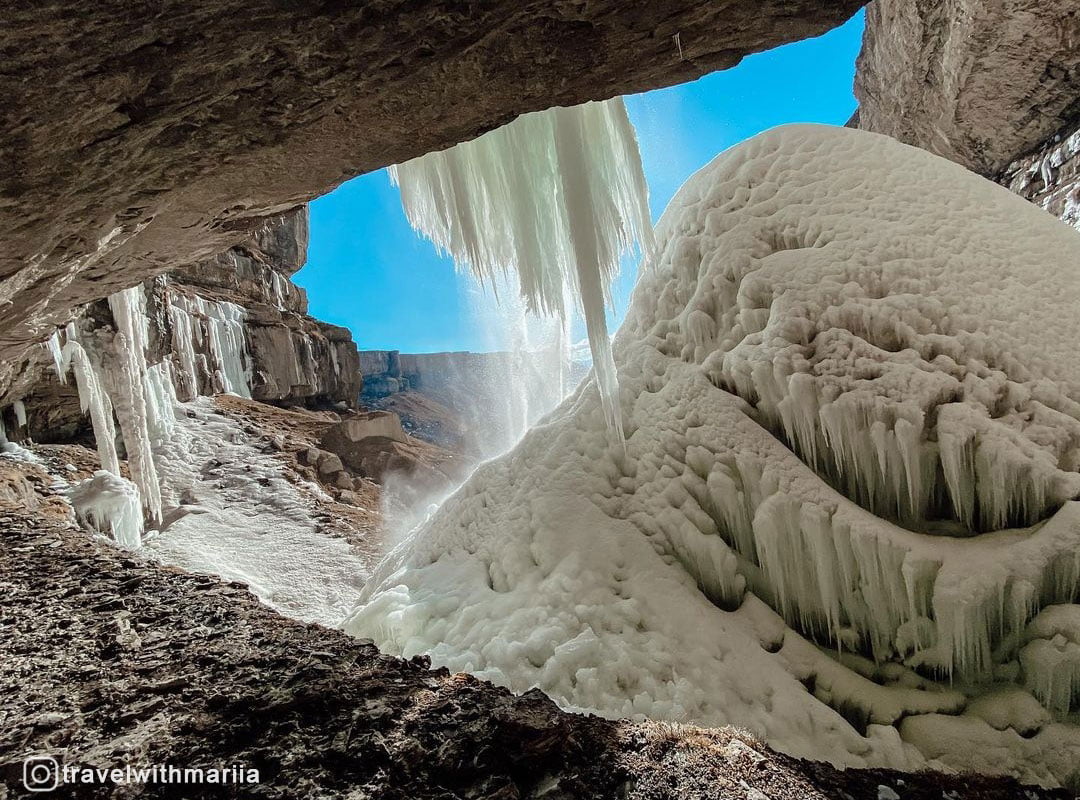 Im Dezember stehen unsere berühmten Wasserfälle still, eingefroren zu surrealen Skulpturen.